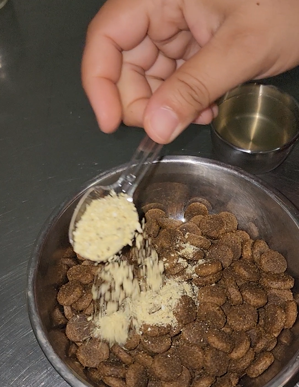 Solo espolvorea sobre su comida diaria y listo.